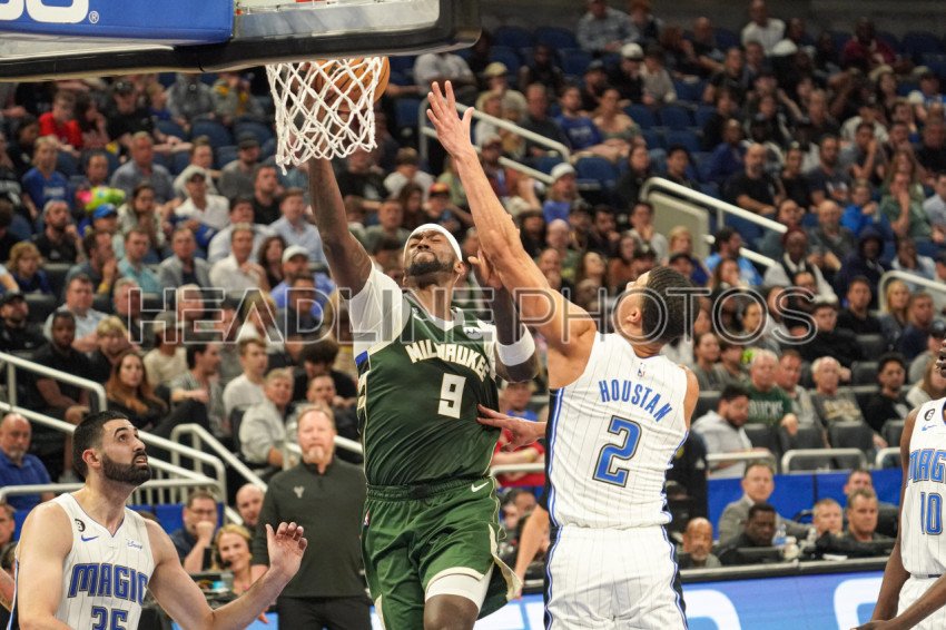 Orlando, Florida, USA,March 7, 2023, Milwaukee Bucks forward Bobby Portis #9 attempt to make a basket in the second half Amway Center. (Photo Credit: Marty Jean-Louis)