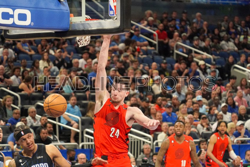 Orlando, Florida, USA, March 5, 2023, Portland Trail Blazers forward Drew Eubanks #24 makes a dunk in the first half at the Amway Center. (Photo Credit: Marty Jean-Louis)