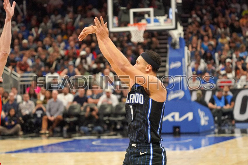 Orlando, Florida, USA, March 5, 2023, Orlando Magic guard Jalen Suggs #4 shoots a three in the fourth quarter at the Amway Center. (Photo Credit: Marty Jean-Louis)