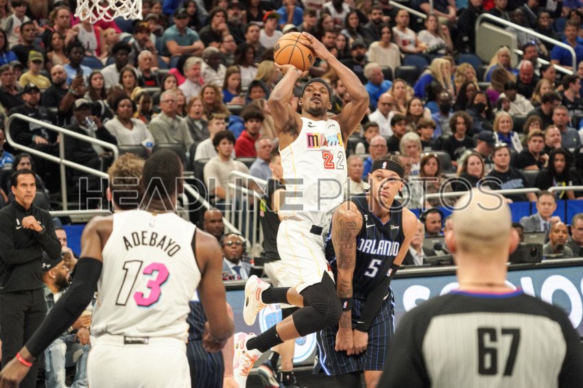 Orlando, Florida, USA, February 11, 2023, Miami Heat forward Jimmy Butler #22 attempt to make a basket in the first half at the Amway Center. (Photo Credit: Marty Jean-Louis)