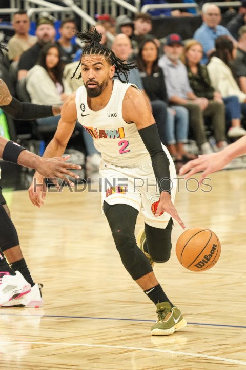 Orlando, Florida, USA, February 11, 2023, Miami Heat guard Gabe Vincent #2 during the first half at the Amway Center. (Photo Credit: Marty Jean-Louis)
