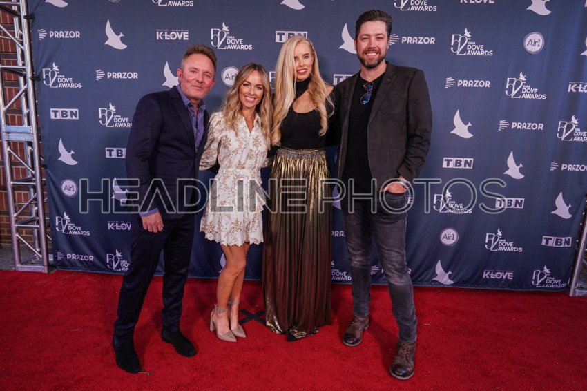 Nashville, Tennessee, USA, October 19, 2021. Christian Singer, Songwriter Chris Tomlin and his wife (left) and Corey Crowder and his wife walk the Red Carpet during the 52nd Annual GMA Dove Awards at Allen Arena.