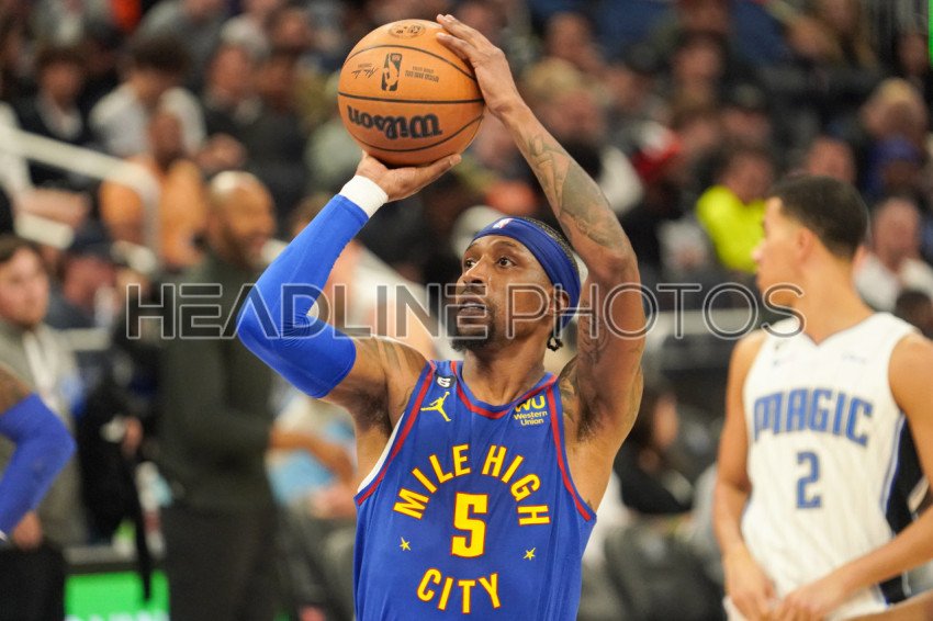 Orlando, Florida, USA, February 9, 2023, Denver Nuggets guard Kentavious Caldwell-Pope #5 shoots a technical in the first half at the Amway Center. (Photo Credit: Marty Jean-Louis)