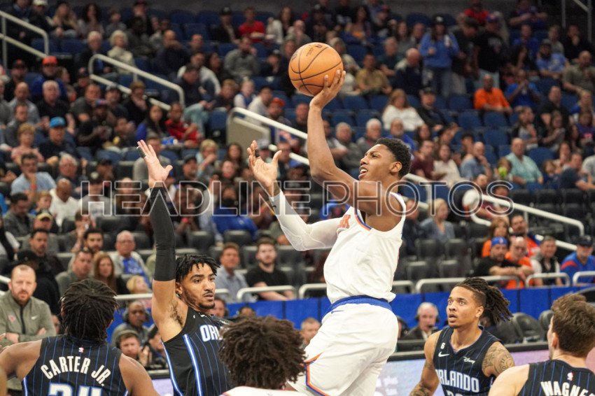 Orlando, Florida, USA, February 7, 2023, New York Knicks Guard RJ Barrett #9 attempt to make a basket in the first half at the Amway Center. (Photo Credit: Marty Jean-Louis)