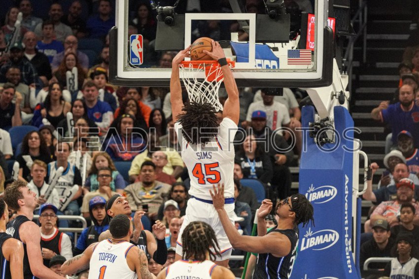 Orlando, Florida, USA, February 7, 2023, New York Knicks center Jericho Sims #45 makes a dunk in the second half at the Amway Center. (Photo Credit: Marty Jean-Louis)