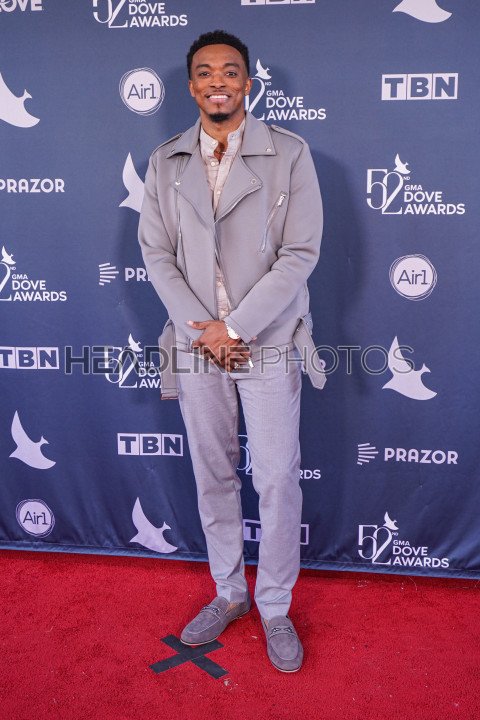 Nashville, Tennessee, USA, October 19, 2021. Singer, Songwriter Jonathan McReynolds walk the Red Carpet during the 52nd Annual GMA Dove Awards at Allen Arena.