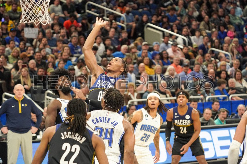 Orlando, Florida, USA, January 25, 2023, Indiana Pacers guard Bennedict Mathurin #00 attempt to make a basket during the first half at the Amway Center. (Photo Credit: Marty Jean-Louis)