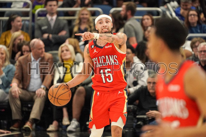 Orlando, Florida, USA, January 20, 2023, New Orleans Pelicans guard Jose Alvarado #15 signals to his team mates in the second half at the Amway Center. (Photo Credit: Marty Jean-Louis)