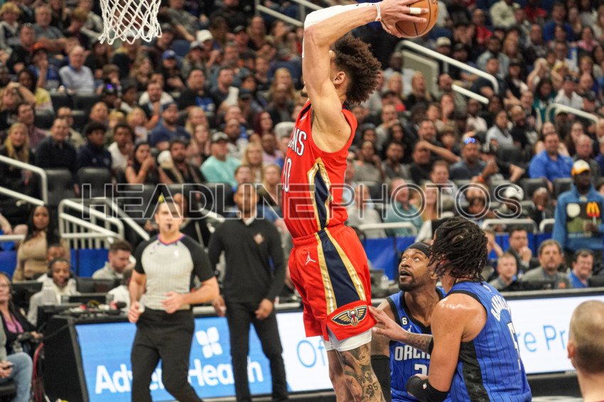 Orlando, Florida, USA, January 20, 2023, New Orleans Pelicans center Jaxson Hayes #10 makes a dunk during the second half at the Amway Center. (Photo Credit: Marty Jean-Louis)