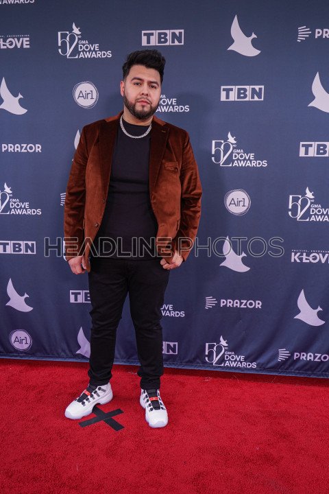 Nashville, Tennessee, USA, October 19, 2021. Sam Ash walk the Red Carpet during the 52nd Annual GMA Dove Awards at Allen Arena.