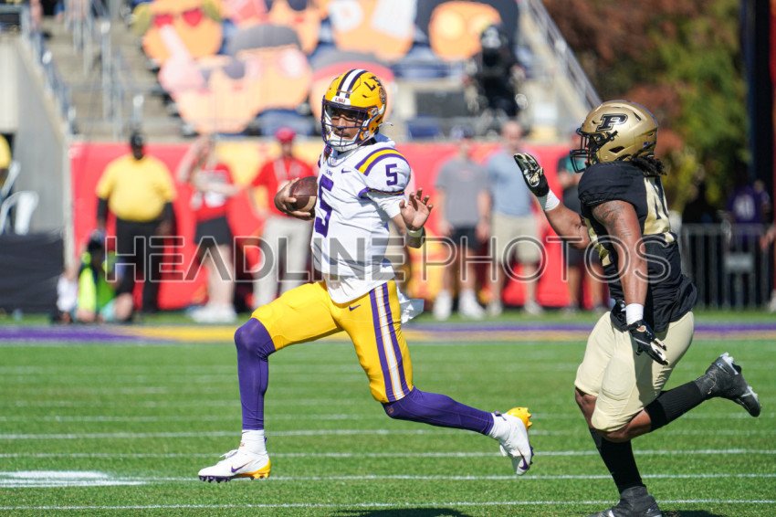 Orlando, Florida, USA, January 2, 2023, LSU quarterback Jayden Daniels #5 run and tries to avoid a tackle during the Cheez-it Citrus Bowl at Camping World Stadium (Photo Credit: Marty Jean-Louis)