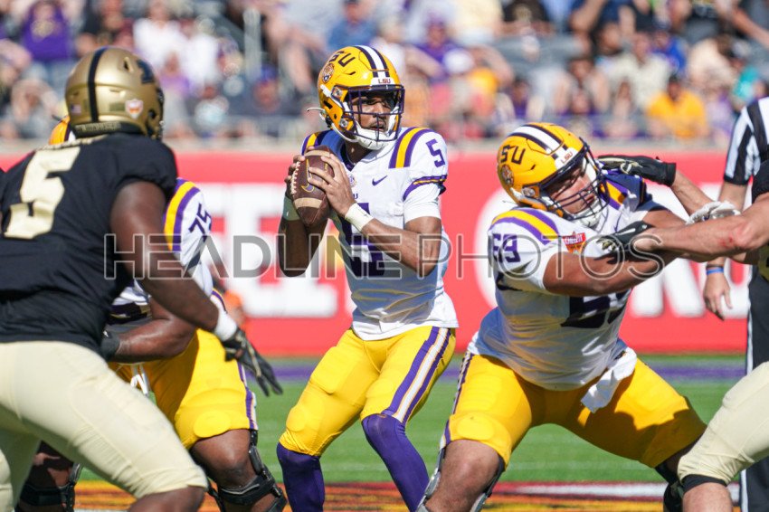 Orlando, Florida, USA, January 2, 2023, LSU quarterback Jayden Daniels #5 readies to make a pass during the Cheez-it Citrus Bowl at Camping World Stadium (Photo Credit: Marty Jean-Louis)