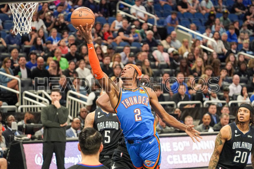 Orlando, Florida, USA, January 4, 2023, Oklahoma Thunder Guard Shai Gilgeous-Alexander #2 attempt to make a basket in the first half at the Amway Center. (Photo Credit: Marty Jean-Louis)