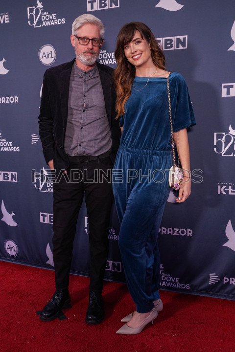 Nashville, Tennessee, USA, October 19, 2021. Christian Singer, Songwriter Matt Maher and his wife walk the Red Carpet during the 52nd Annual GMA Dove Awards at Allen Arena.