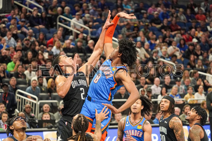 Orlando, Florida, USA, January 4, 2023, Oklahoma Thunder forward Jalen Williams #8 attempt to make a basket in the first half at the Amway Center. (Photo Credit: Marty Jean-Louis)