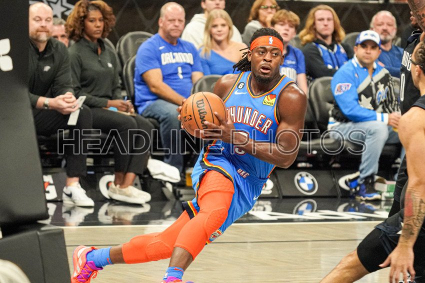 Orlando, Florida, USA, January 4, 2023, Oklahoma Thunder Guard Luguentz Dort #5 rushes towards the basket in the first half at the Amway Center. (Photo Credit: Marty Jean-Louis)