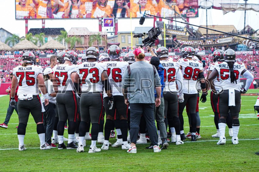 Tampa Bay, Florida, USA, January 1, 2023, Tampa Bay Buccaneers players huddle before the game at Raymond James Stadium. (Photo Credit: Marty Jean-Louis)