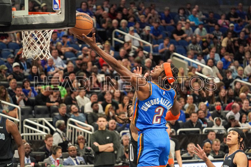 Orlando, Florida, USA, January 4, 2023, Oklahoma Thunder guard Shai Gilgeous-Alexander #2 attempt to make a layup in the first half at the Amway Center. (Photo Credit: Marty Jean-Louis)