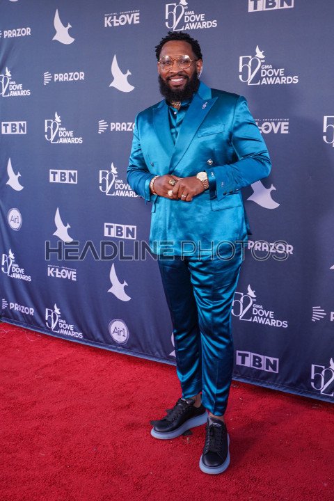 Nashville, Tennessee, USA, October 19, 2021. Pastor Mike Jr walk the Red Carpet during the 52nd Annual GMA Dove Awards at Allen Arena.