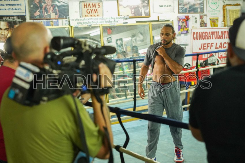 Boxer Keith "One Time" Thurman during a press event at his Gym before his fight with Manny Pacquiao in St Petersburg Florida on Wednesday July 10. Photo Credit: Marty Jean-Louis