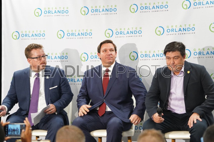 Pregame Press conference with Florida Governor Ron Desantis, and Alex Leitao at Exploria Stadium in Orlando Florida on Wednesday July 31, 2019. Photo Credit: Marty Jean-Louis