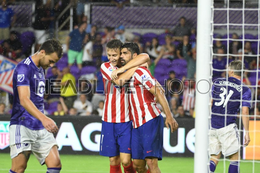 Atletico De Madrid celebrates another goal during the all star game at Exploria Stadium in Orlando, Florida on Wednesday July 31, 2019. Photo Credit: Marty Jean-Louis