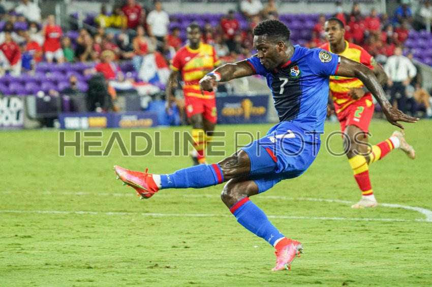 Orlando, Florida, USA, July 20, 2021, Panama MIdfielder Jose Rodriguez #7 shoots and scores the second goal of the match against Granada during the Concacaf Gold Cup at Exploria Stadium. (Photo Credit: Marty Jean-Louis)