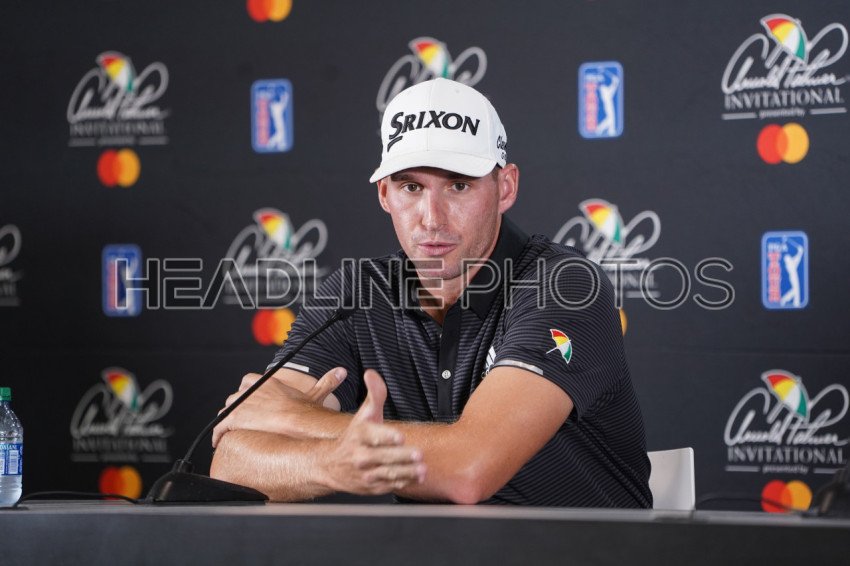 First time at the Arnold Palmer Invitational Brandon Matthews answers questions from the press at Bay Hill in Orlando Florida during the 2020 Arnold Palmer inviational. Photo Credit: Marty Jean-Louis