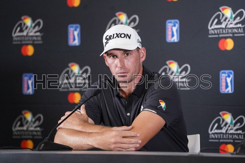 First time at the Arnold Palmer Invitational Brandon Matthews answers questions from the press at Bay Hill in Orlando Florida during the 2020 Arnold Palmer inviational. Photo Credit: Marty Jean-Louis