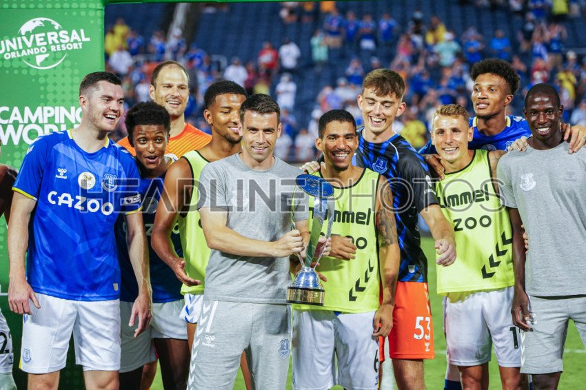 Orlando, Florida, USA, July 25, 2021, Everton players celebrate Florida Cup win at Camping World Stadium. (Photo Credit: Marty Jean-Louis)