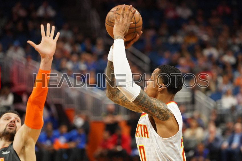 Atlanta Hawks player John Collins #20 shoots a three point during the game at the Amway Center in Orlando Florida on Monday February 8, 2020. Photo Credit: Marty Jean-Louis