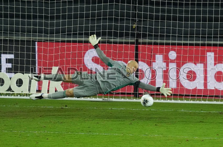 Orlando, Florida, USA, December 16, 2020, Atlanta United Goalkeeper Brad Guzan #1 jump to save the ball during the CONCACAF Quarter Final. (Photo Credit: Marty Jean-Louis)
