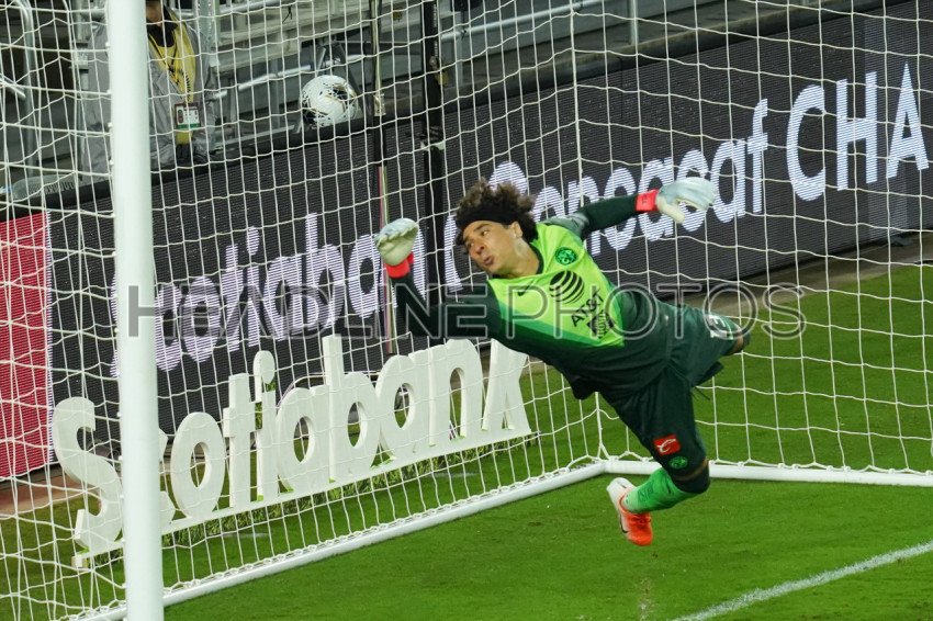 Orlando, Florida, USA, December 16, 2020, Club America Goalkeeper Guillermo Ochoa #13 jumps to try to save the ball during the CONCACAF Quarter Final. (Photo Credit: Marty Jean-Louis)