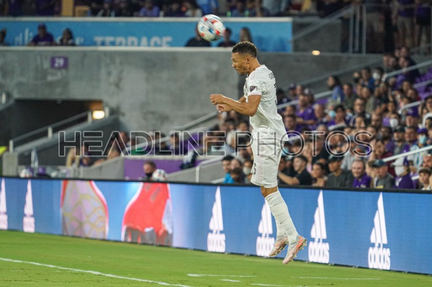 Orlando, Florida, USA, August 4, 2021, Inter Miami defender Kieran Gibbs #3 makes a header at Exploria Stadium. (Photo Credit: Marty Jean-Louis)