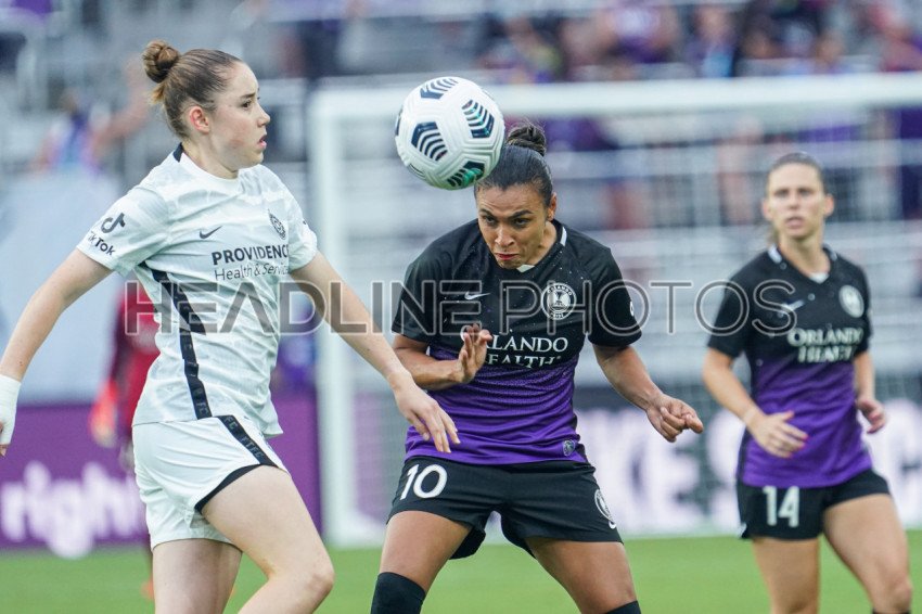 Orlando, Florida, USA, August 14, 2021, Orlando Pride player Marta #10 makes a header at Exploria Stadium. (Photo Credit: Marty Jean-Louis)