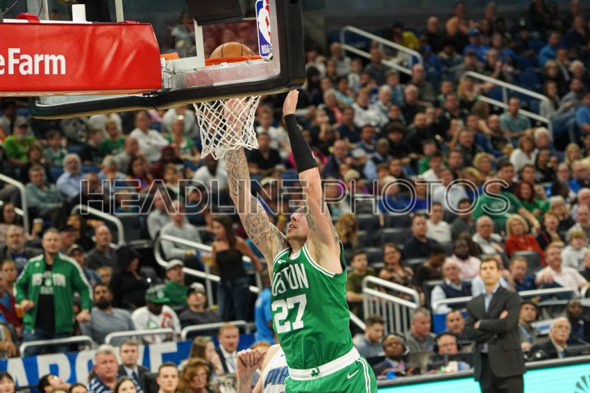 Boston Celtics player Daniel Theis #27 makes a dunk at the Amway Center on Friday January 24, 2020 in Orlando, Florida. Photo Credit: Marty Jean-Louis