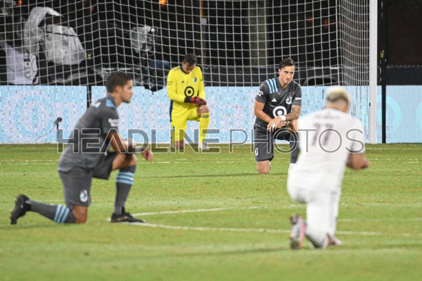 Colorado Rapids and Minnesota United players kneel in solidarity for the Black Lives Matter Movement during the MLS is Back Tournament at ESPN Wild World of Sport in Orlando Florida USA on Tuesday July 22, 2020. Photo Credit: Marty Jean-Louis