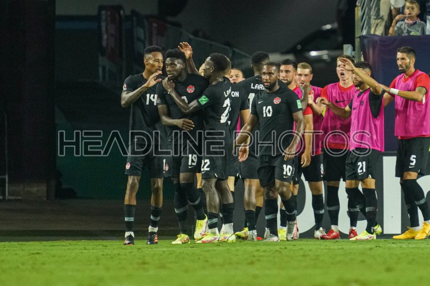 Nashville, Tennessee, USA, September 5, 2021, Canada players celebrate after scoring during the 2022 World Cup Qualifier at Nissan Stadium. (Photo Credit: Marty Jean-Louis)