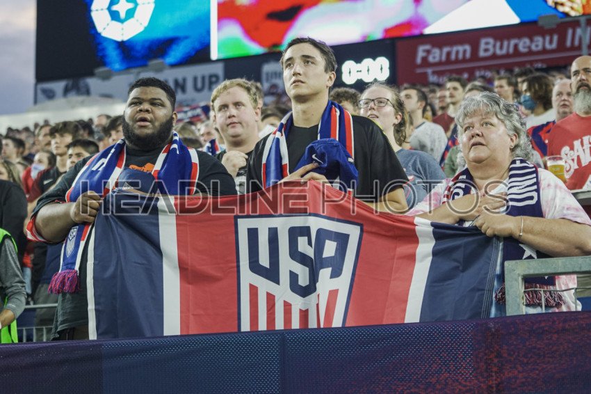 Nashville, Tennessee, USA, September 5, 2021, USA fans during the National Anthem at the 2022 World Cup Qualifier at Nissan Stadium. (Photo Credit: Marty Jean-Louis)