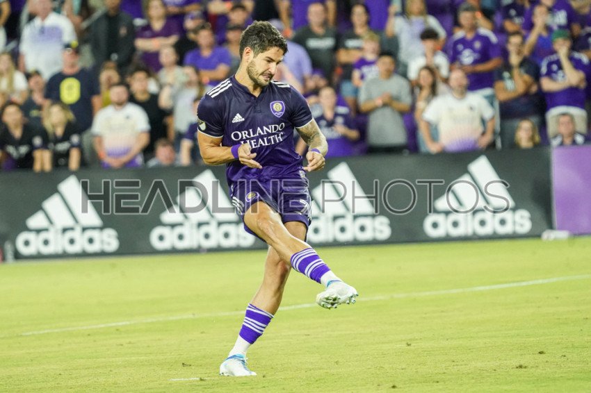 Orlando, Florida, USA, June 29, 2022, Orlando City player Alexandre Pato #7 shoots a penalty kick during the US Open Cup at Exploria Stadium (Photo Credit: Marty Jean-Louis)