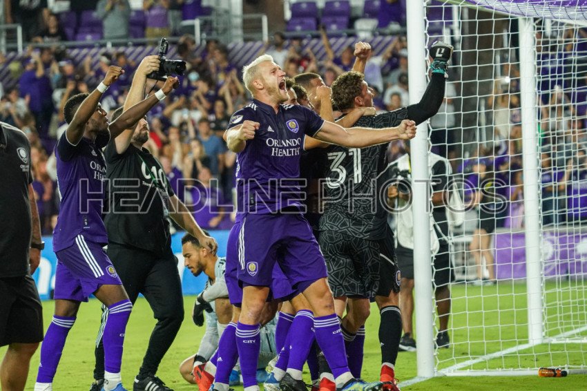 Orlando, Florida, USA, May 25, 2022, Orlando City SC players celebrate after winning the match against Inter Miami at Exploria Stadium. (Photo Credit: Marty Jean-Louis)