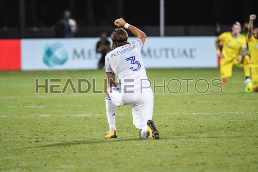FC Cincinnati player Pettersson, Tom #3 showing Solid for the Black Lives Matter Movement at ESPN's Wild World of Sports in Orlando Florida, USA on Saturday July 11, 2020. Photo Credit: Marty Jean-Louis at ESPN's Wild World of Sports in Orlando Florida, USA on Saturday July 11, 2020. Photo Credit: Marty Jean-Louis