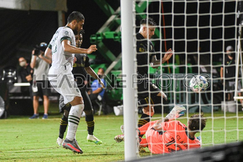 Portland Timbers Goalkeeper Clark, Steve #12 attempt to make a save during the MLS is Back Tournament at ESPN Wild World of Sport in Orlando Florida USA. Photo Credit: Marty Jean-Louis
