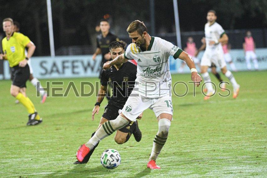Portland Timbers defender Zuparic, Dario #13 fight to keep the ball during the MLS is Back Tournament at ESPN Wild World of Sport in Orlando Florida USA. Photo Credit: Marty Jean-Louis