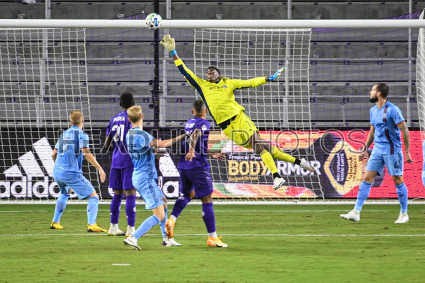 New York City FC Goalkeeper Sean Johnson #1 attempt to make a save at Explorida Stadium in Orlano Florida on Wednesday October 14, 2020. Photo Credit: Marty Jean-Louis