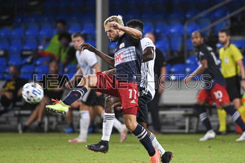 New England Revolution midfielder Rowe, Kelyn #11 makes a kick during the MLS is Back Tournament at ESPN Wild World of Sports in Orlando Florida on Saturday July 26, 2020. Photo Credit: Marty Jean-Louis
