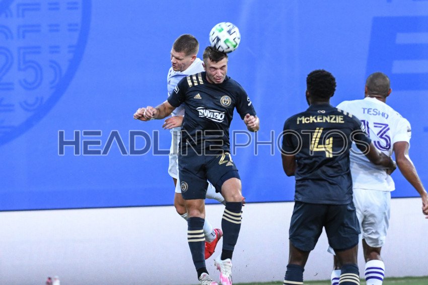 Philadelphia Union defender Wagner, Kai #27 wins the header during the MLS is Back Tournament at ESPN Wild World of Sports in Orlando Florida USA on Monday July 20, 2020. Photo Credit: Marty Jean-Louis