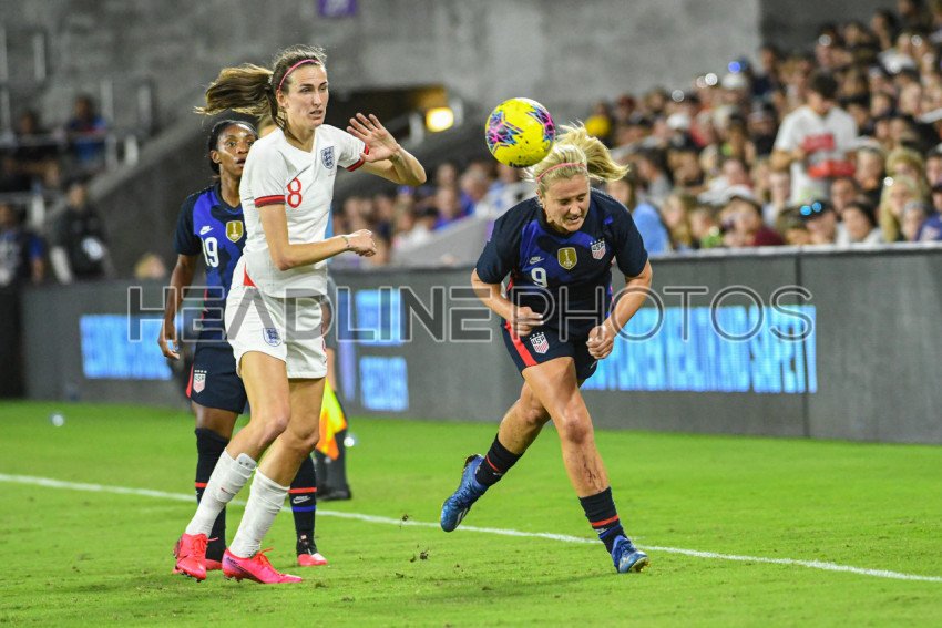 USWNT Player Lindsey Horan #9 makes aheader during the 2020 SheBelieves Cup at Exploria Stadium in Orlando Florida on Thursday March 5, 2020. Photo Credit: Marty Jean-Louis