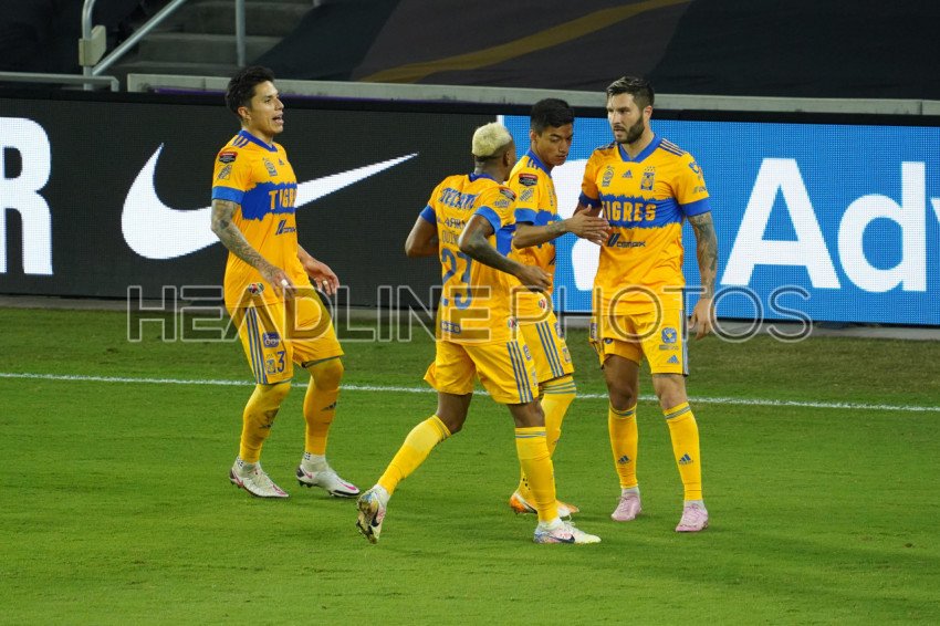 Orlando, Florida, USA, December 19, 2020, Tigres UANL players celebrate goal during the CONCACAF Semi Final. (Photo Credit: Marty Jean-Louis)