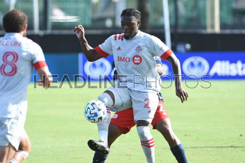 Toronto FC forward Akinola, Ayo #20 receives a pass during the MLS is Back Tournament at ESPN Wild World of Sports in Orlando Florida USA on Tuesday July 21, 2020. Photo Credit: Marty Jean-Louis